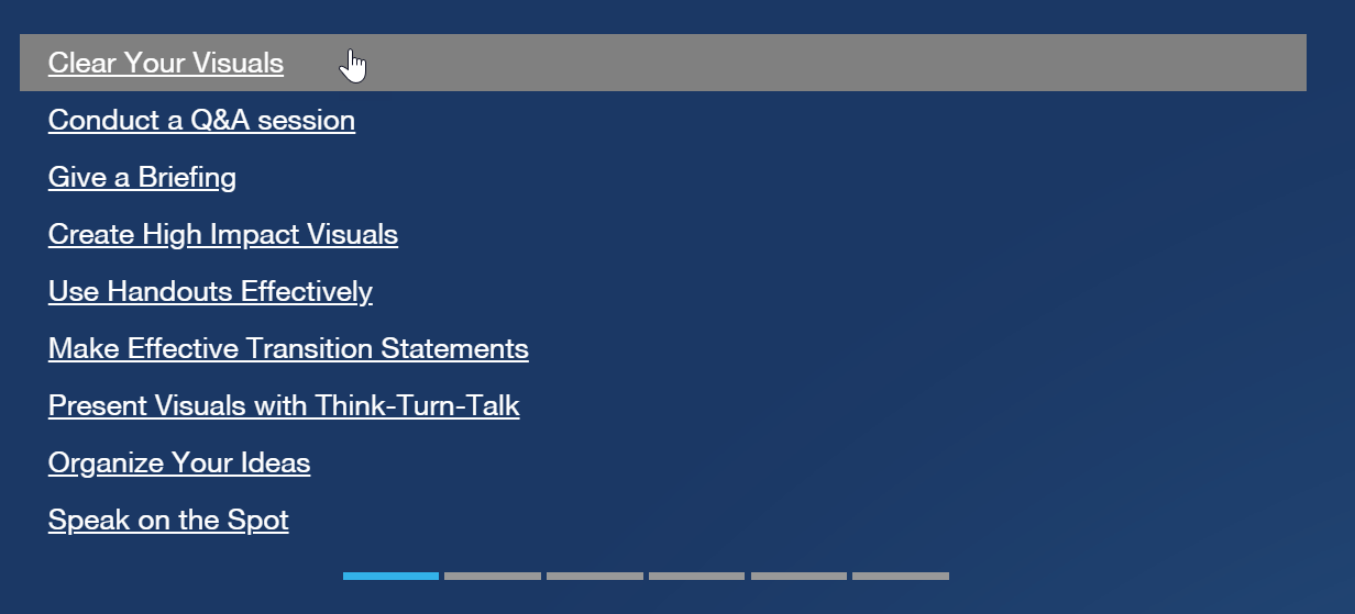 Tip: The LearnTOs page has several screens. Select the bars near the bottom of the page to navigate between screens